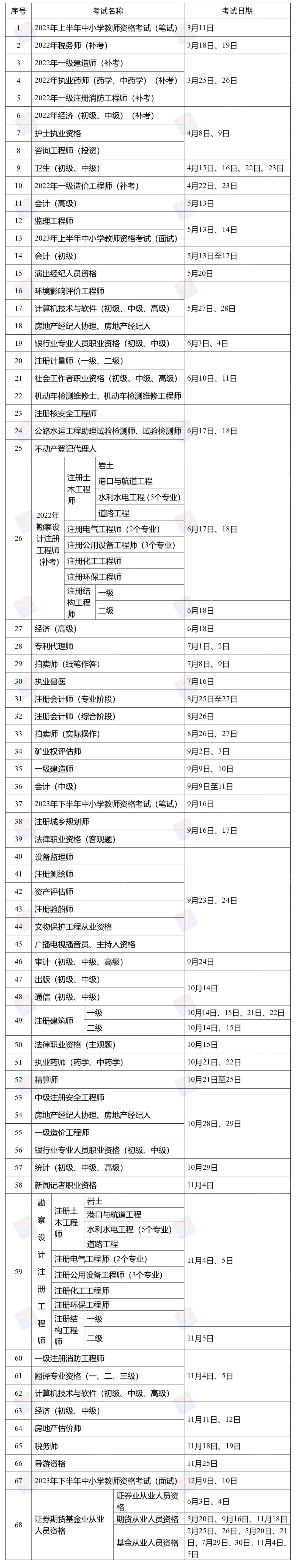 《关于2023年度专业技术人员职业资格考试计划及有关事项的通知》