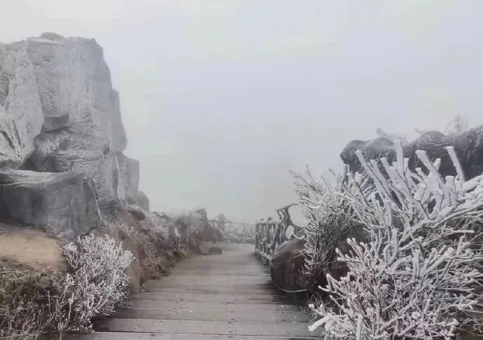 受强寒潮天气影响,1月15日夜间,京港澳高速公路云岩高海拔路段录得最低温度-3℃,并伴有浓雾,有小雨,能见度较低;寒潮导致云岩服务区路段部分桥面、护栏和防抛网均出现不同程度结冰。
