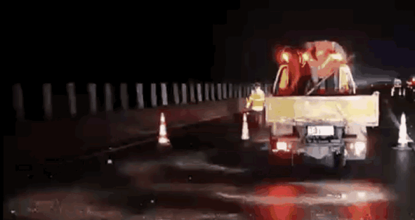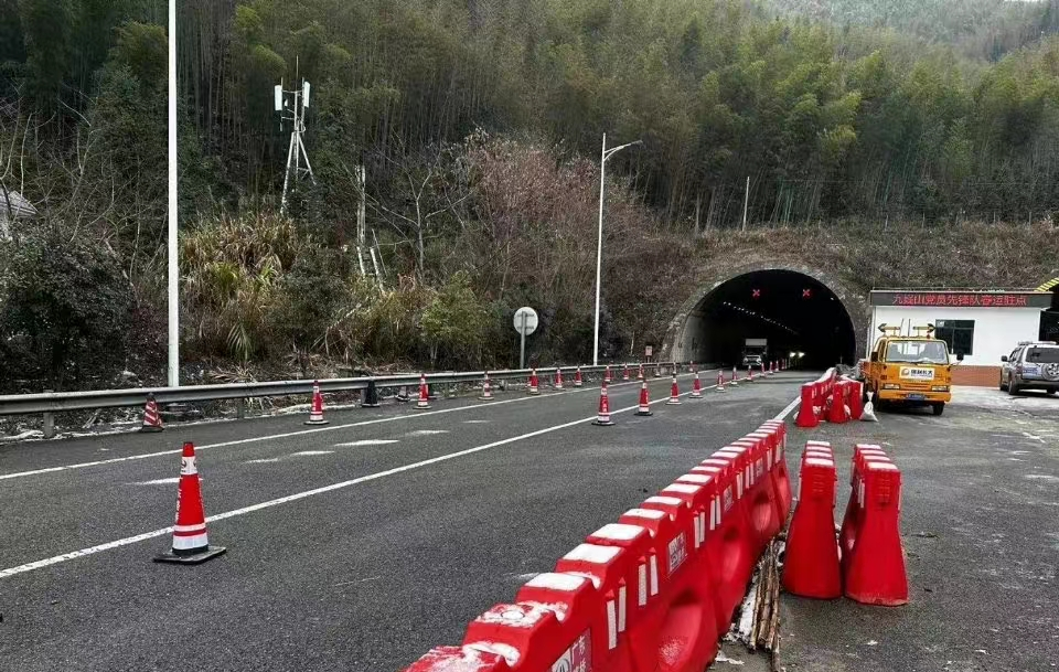 1月15日11时24分起,清远交警联合路政在二广高速南行九嶷山K2424开始收窄车道,将快车道、慢车道通过摆放雪糕筒的方式进行车道压缩,压缩成慢车道通行,并设置“冰雪天气,谨慎行驶”的警示标志牌,收窄车道总长约9公里。