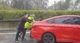 经询问得知,因车辆抛锚,熄火启动不了,只能把车停在快速车道。司机不懂应急处理,只能一群人围着车辆干着急。时值下雨,路面湿滑,在规范做好安全防护措施的情况下,执勤民警积极联合群众力量,把事故车辆快速、安全地推到应急车道上。
