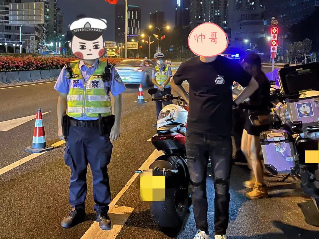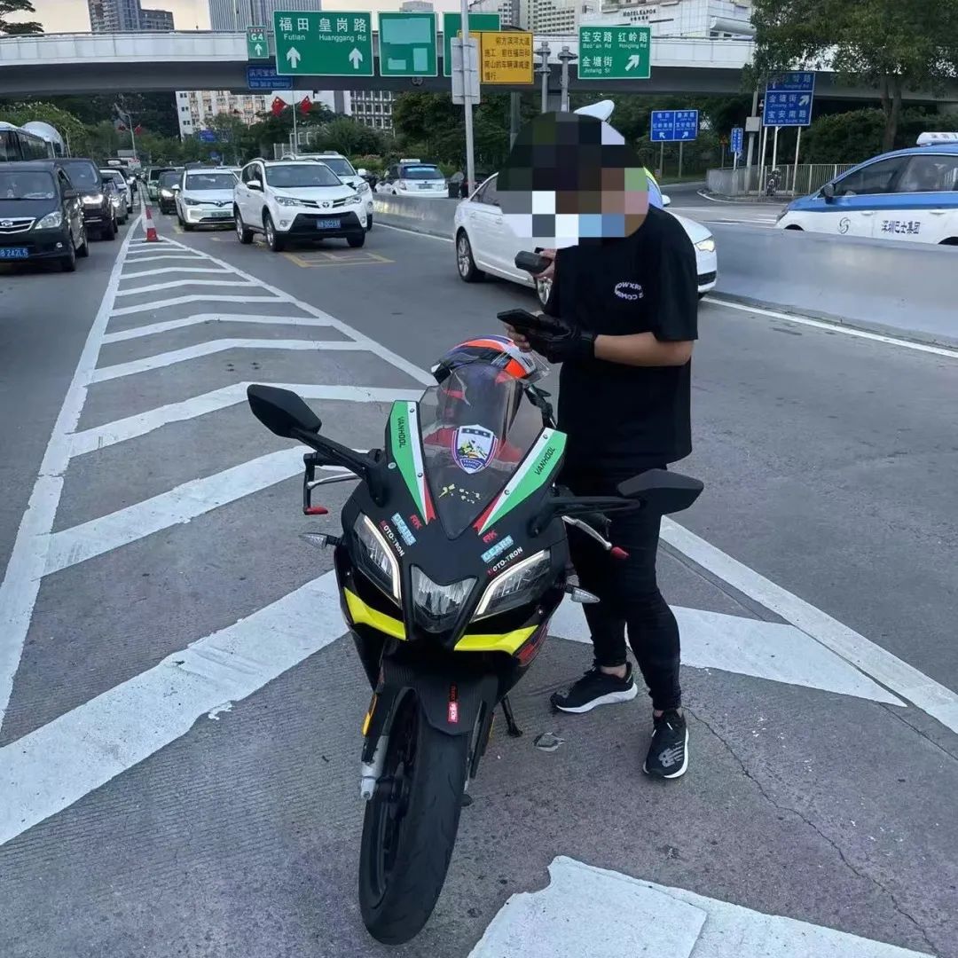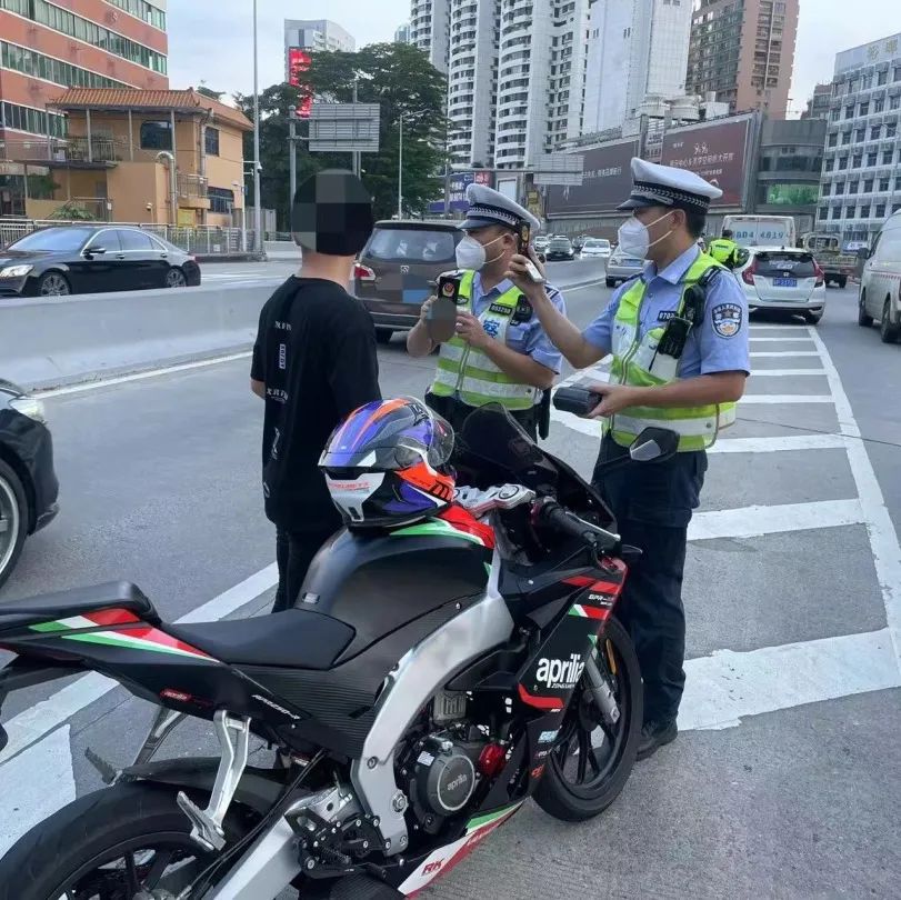 深圳交警在路面执勤时发现,在滚滚车流中,出现了一辆渝D牌摩托车,当即便让其靠边停车。
