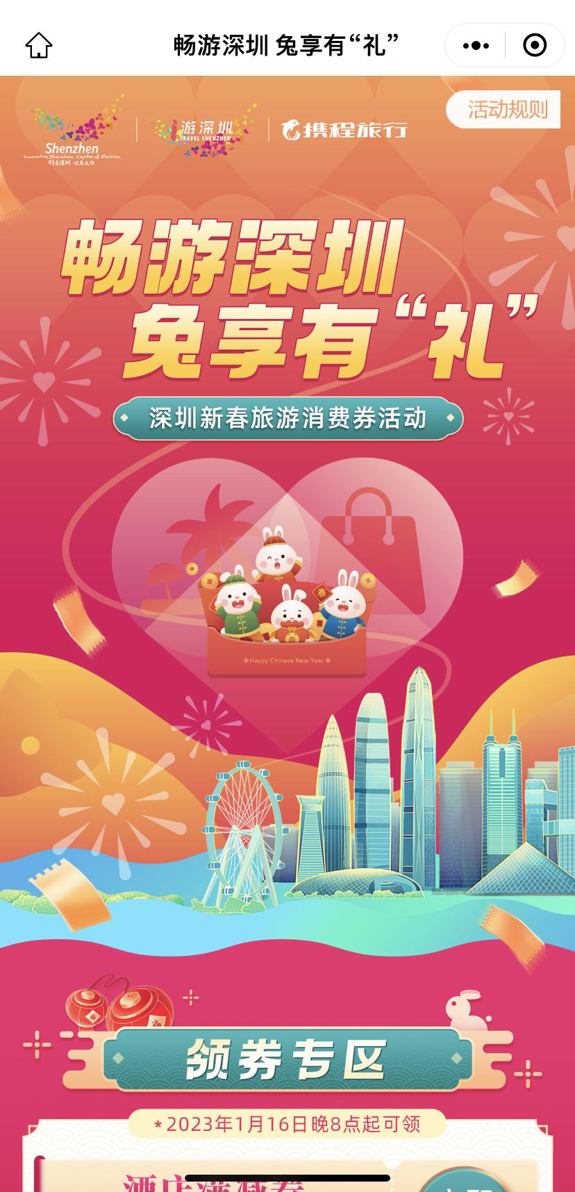 携程旅行APP:首页搜索“深圳旅游消费券”即可查看链接直达活动页面