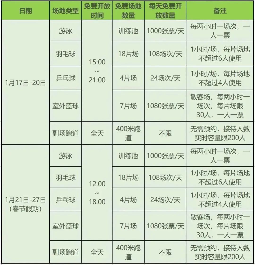 免费!打折!这些体育场馆春节不打烊