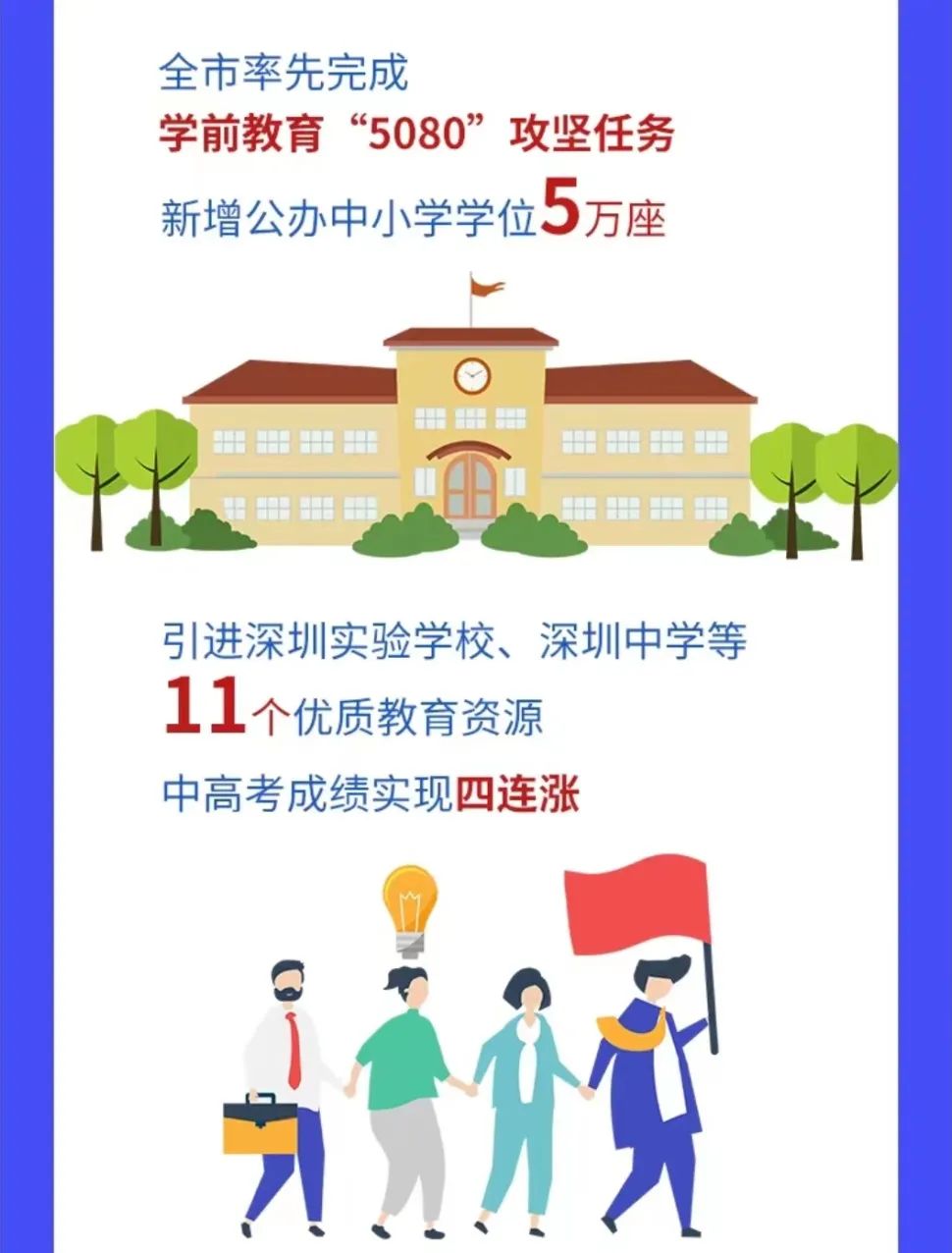 大力开展职业教育和技能培训,推进光明区中职学校落地,与深圳职业技术学院开展合作,引进培养技能人才10万人次以上。
