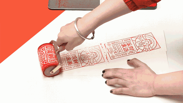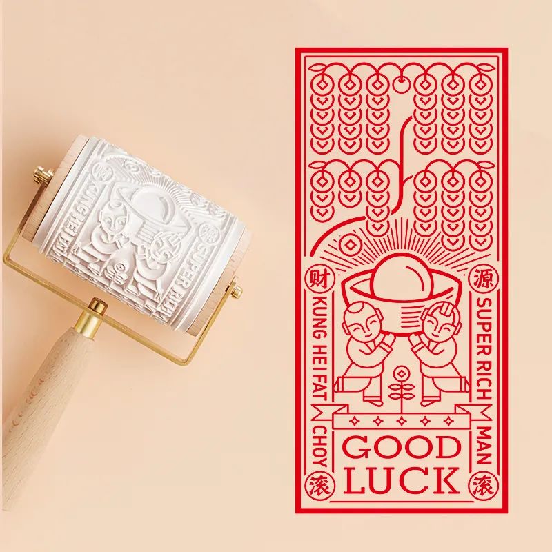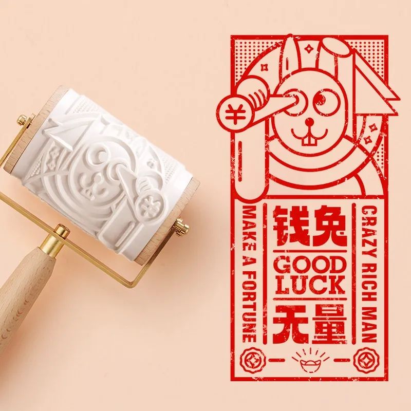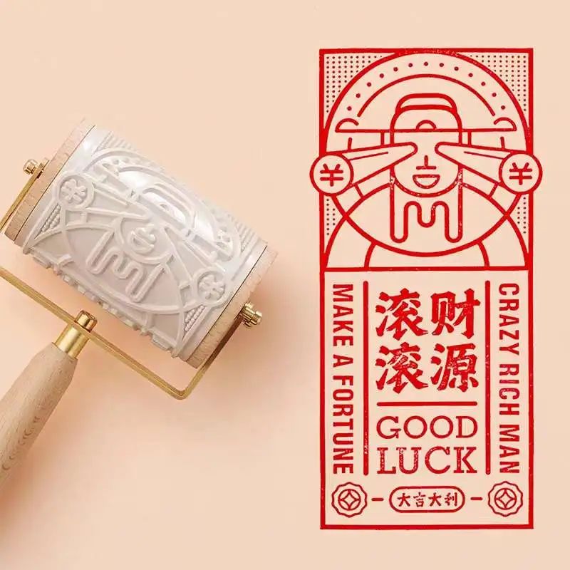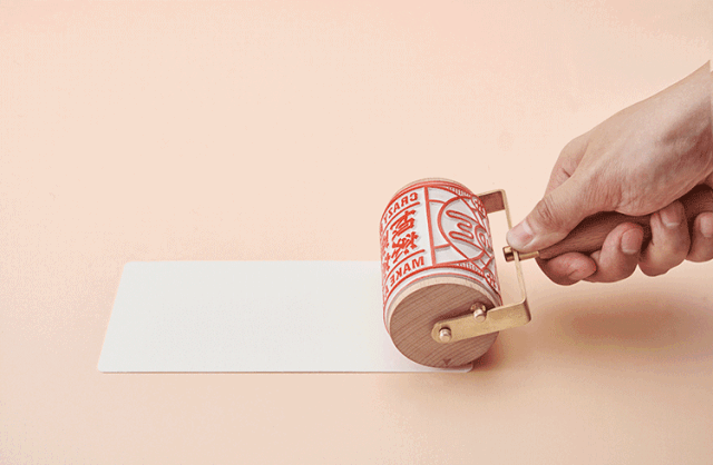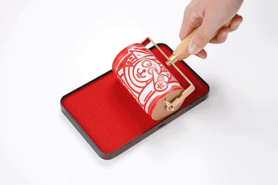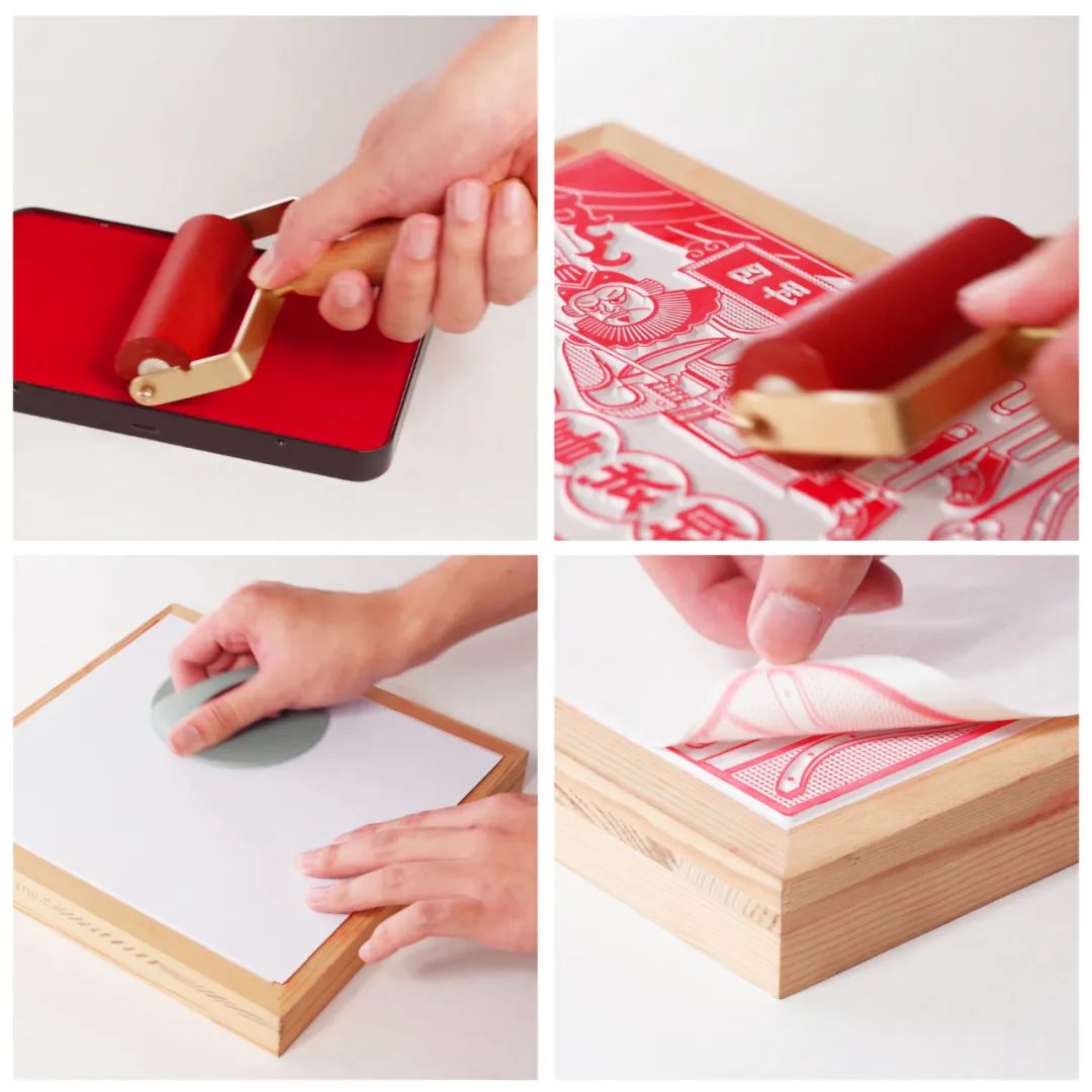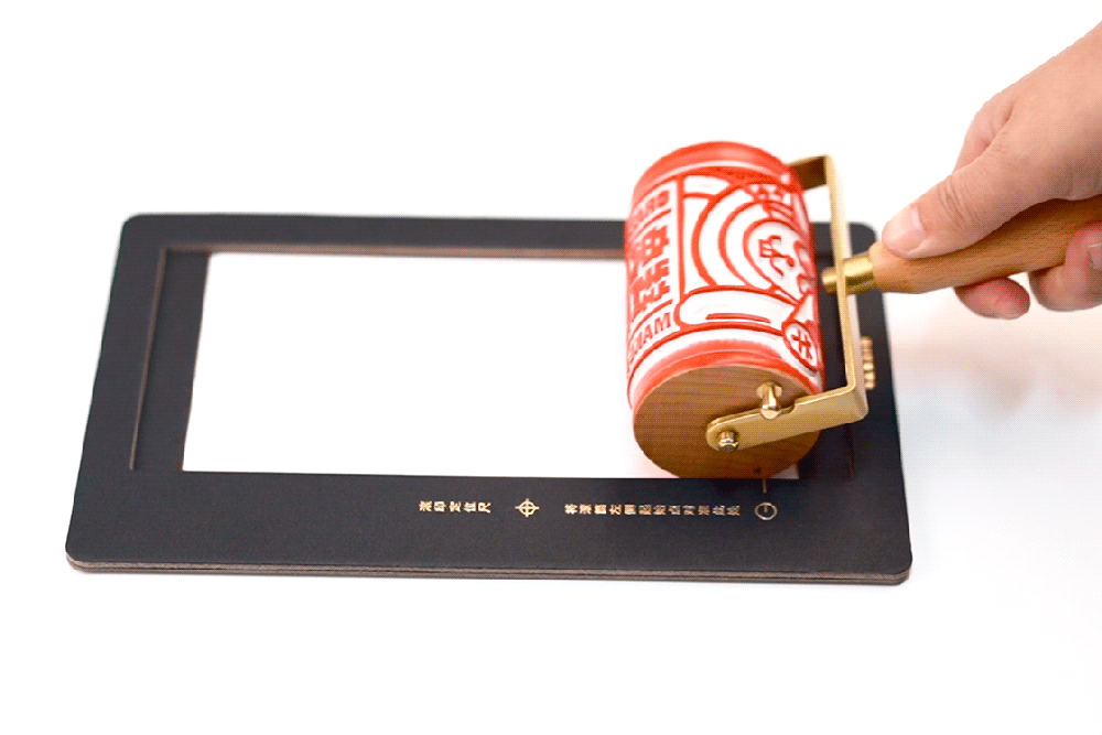 套装内配备专用红色油墨印台,用滚筒沾取油墨,在雕版上来回滚匀,使油墨均匀附着在胶板上,可反复多次滚印,确保油墨覆盖至胶板每一处。