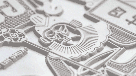 趁油墨还未干时,将版画专用纸平整地铺在胶板上,一手固定纸张避免图案移位,一手用磨拓工具压磨纸面,使得油墨充分转印到纸面上。