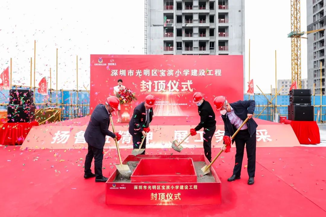 1月16日,光明区宝滨小学建设工程项目封顶仪式在光明区宝滨小学建设工程项目施工现场举行。