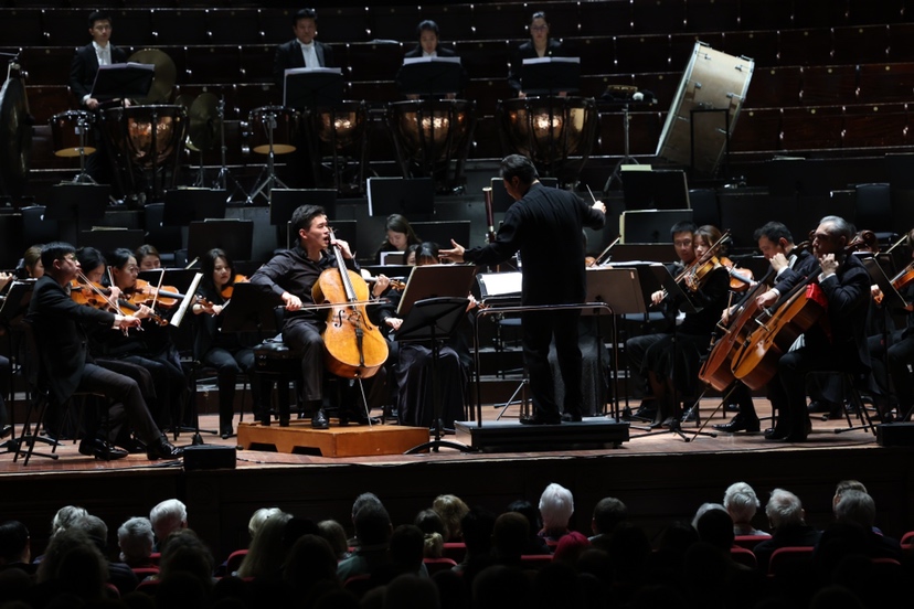 演出开场曲目是谭盾根据电影《卧虎藏龙》改编的大提琴协奏曲,巡演的每一场都由当今最活跃的大提琴家之一的聂佳鹏担纲。他一袭黑色演出服出场,他拎着大提琴,有着骑士的威武风范。他沉稳落座,《卧虎藏龙》选段从他的弓弦之间,淡雅流淌,轻柔飘逸。他像前几场一样,娓娓道来,那种得心应手,那种大自在的情绪浸入,大师级气度,娴熟的技法,透出侠士风骨,峥嵘临风。这种独有的东方音韵,令当地观众十分惊叹。他们从未听过这种旋律,他们感到新鲜而刺激。