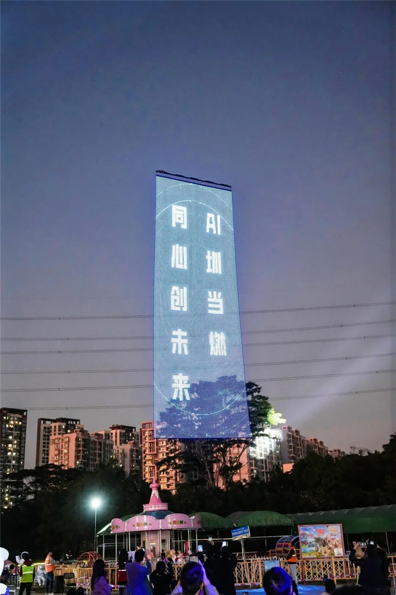 当晚,当吉尼斯世界纪录认证的御光飞天屏升上高空、超薄超轻屏幕上映现“同心创未来,AI圳当燃”字样,“同心创未来 AI圳当燃”龙岗区新的社会阶层人士落实区域发展战略十大行动随之正式发布。
