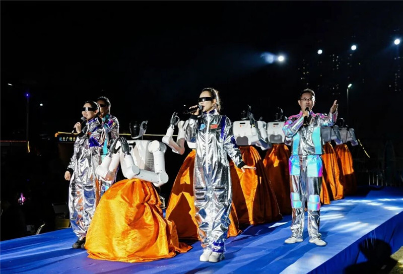 当晚,一场由龙岗区新的社会阶层人士精心编排的创意秀再度点燃现场氛围,点亮了属于创新者的“AI之夜”。“人机共创”创意秀,鸿蒙智驾车队与合唱团共同呈现《同行的人》,新联会班子数字人和机器人、机器狗共同演绎原创歌曲《鸿蒙开物 星辰同心》,原创配音秀《我要加入新联会》,客家山歌《新阶层人力量强》,快板《新联共筑鸿蒙梦》等丰富多彩的节目轮番上演,既展现龙岗新的社会阶层人士的多才多艺,也生动诠释科技与人文同行、虚拟与现实融合的发展理念,激发出蓬勃奋进的“新”景象、“新”未来。
