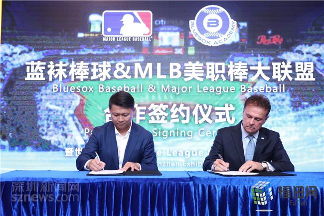 深圳蓝袜国际棒球学院与MLB美国职业棒球大联盟在华润深圳湾体育中心举行合作签约仪式。