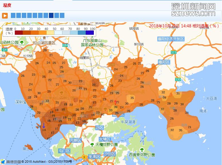 深圳新闻网10月29日讯(记者 陈婕)29日,深圳市最高气温直逼30度,与此对应的是,今日最低相对湿度24%,比今日历史最低值25%(1978、1991年)还要干,真叫一个晴朗干燥。