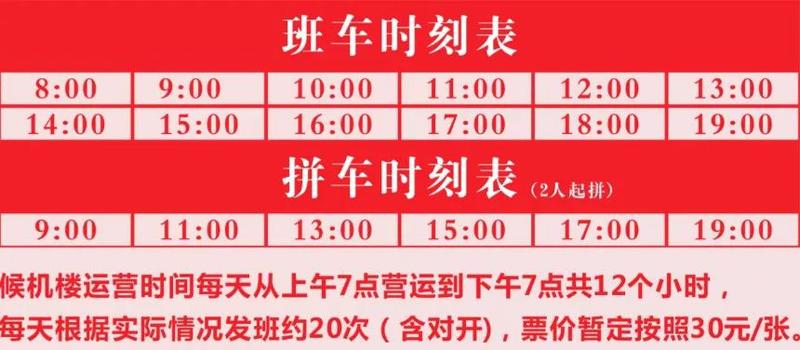 每天根据实际情况发班约20次(含对开 ),票价暂定按照30元 /张。