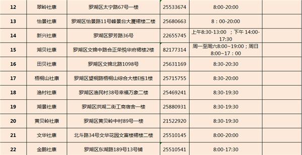 患者可以根据居住地选择附近社康就诊,开诊时间见下表,具体可以电话咨询