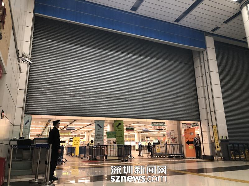 2月3日6:30,深圳湾口岸出境大厅深港分界线的闸门缓缓开启(通讯员 黄钊摄)