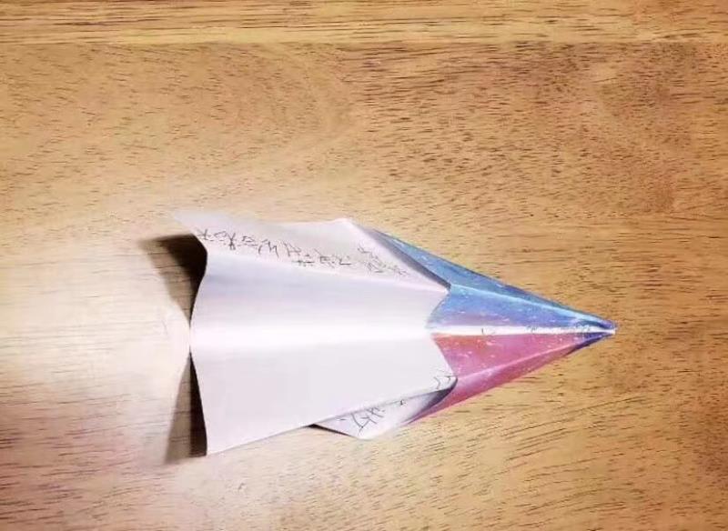 3月7日晚上9点,家住福田区的一位深圳市民的阳台上,飞来了一家纸飞机。正当市民准备将纸飞机扔掉时,发现纸飞机的一侧机翼上写着:“请风神带给老天爷”,另一侧机翼写着:“老天爷收”。