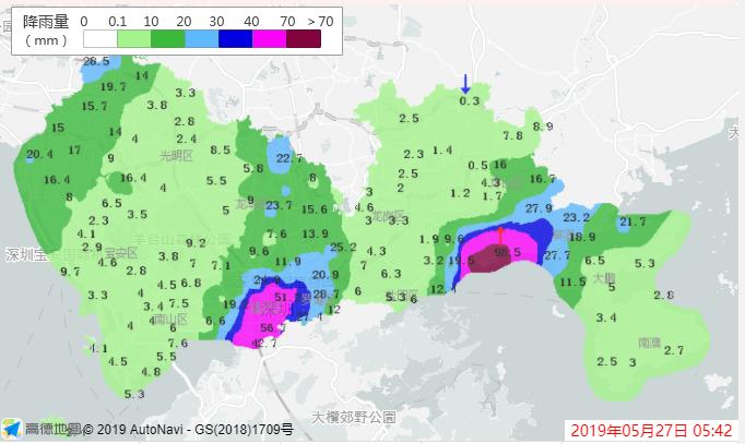 深圳新闻网2019年5月27日讯(记者刘婷)据深圳市气象台消息,过去3小时,深圳福田区、罗湖区、盐田区和龙岗区(南湾、布吉、吉华街道)累计雨量已达暴雨,预计强降雨还将持续2-3小时,深圳市气象台于5月27日05时20分在福田区,罗湖区、盐田区和龙岗区(南湾、布吉、吉华街道)发布暴雨橙色分区预警。在此前的5月27日04时20分,深圳市气象台已在坪山区(马峦、石井街道)和大鹏新区(大鹏、葵涌街道)发布暴雨红色分区预警,目前大鹏、葵涌、石井、马峦街道的暴雨红色预警生效中。
