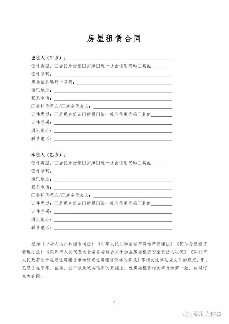 即日起,深圳办理房屋租赁登记备案手续将开始使用全新修订的《深圳市房屋租赁合同》。