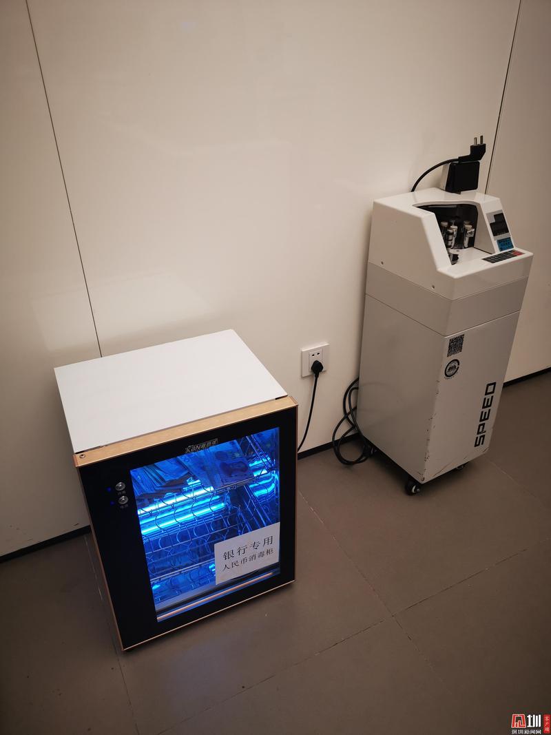 比如,中国银行深圳市分行收入的现金不直接对外付出,由网点统一上缴金库,统一使用紫外灯和臭氧进行消毒,再清分进而达到投放市场标准。中信银行深圳分行在各营业网点营业现金区统一配置了臭氧消毒设备,每次对现金进行消毒的时间大概在15-30分钟。招商银行深圳分行在每天中午时段,利用关金库这个时间点,对现金进行集中臭氧消毒处理。同时,员工开库作业时打开风扇排气,加强通风处理。深圳农商行所有营业网点都配备紫光灯、紫外消毒柜、臭氧发生机等消毒设备,对所有回笼的现金进行消毒。此外,还有专门的人民币消毒柜。像华夏银行深圳分行使用的人民币消毒柜,采用紫外线和臭氧叠加的方式进行消毒杀菌。