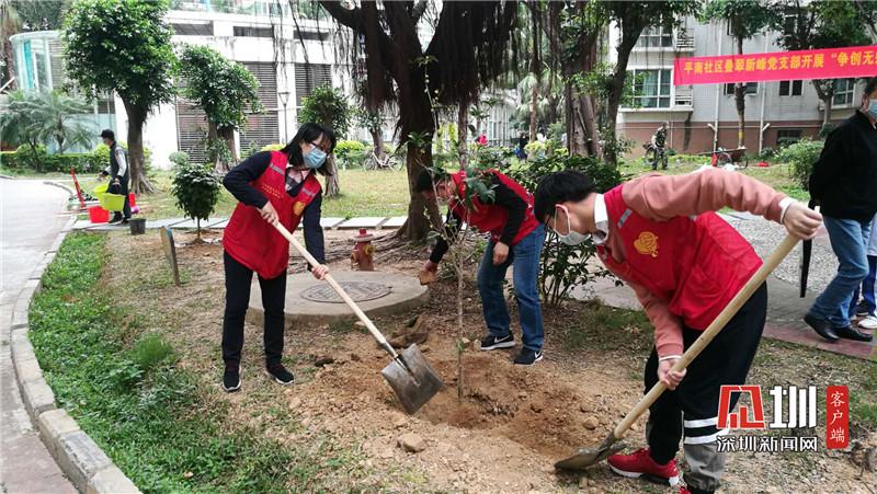 见圳客户端·深圳新闻网3月13日讯(见圳客户端、深圳新闻网记者黄琬婷 通讯员李丽辉)在全国人民众志成城抗击新冠肺炎疫情的时刻,第42个“3·12植树节”悄然而至。在做好疫情防控的同时,龙岗街道平南社区叠翠新峰党支部开展“争创无疫小区共筑健康家园”主题党员日暨植树节活动,以实际行动为家园小区美化再添绿意。