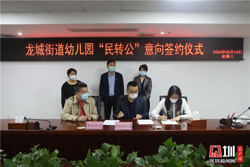 见圳客户端、深圳新闻网3月18日讯(记者 武媛媛 通讯员 马勤悦 林霞)3月18日上午,龙城街道举行幼儿园“民转公”意向签约仪式,与黄阁翠苑幼儿园等辖区7家民办幼儿园现场签订转型意向协议书,为街道幼儿园“民转公”工作按下提速键。该街道办事处主任李顺恭、副调研员万伟,街道社会事务办、司法所、龙城教育办及6所政府产权幼儿园、1所非政府产权幼儿园负责人参加。