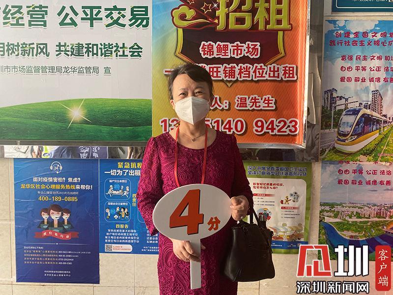 福田区人大代表刘霞为农贸市场打分。(满分为5分)