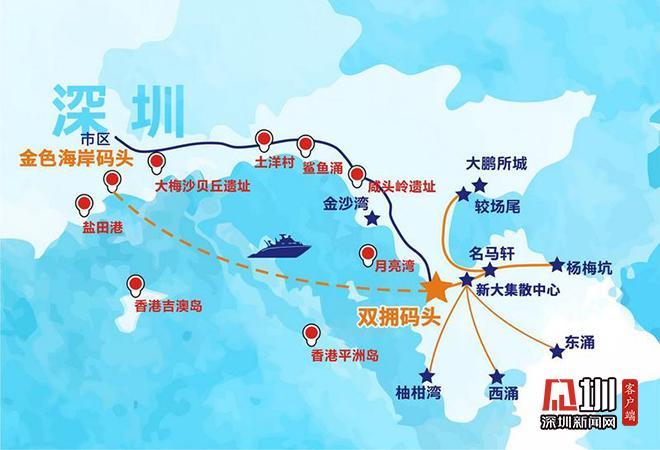 深港环海游主要观光游览深圳到香港的海域区域,从盐田海鲜食街金色海岸码头出发,途径盐田港——周大福总部——沙头角——万科壹海城——中英街——香港鸭洲岛——香港吉澳岛等再返回到盐田海鲜食街金色海岸码头,全程共55分钟。沿途还可以看到不少名胜古迹,比如大梅沙贝丘遗址、咸头岭文化遗址、东江纵队北撤点等景点,大鹏湾内海、港、湾、岛、山等绝美风光被串联在一起,山海相望,别具风格,让市民游客大饱眼福。每日开航时间为9:30、11:30、14:00、15:30 (具体开航时间以码头公布为准)。