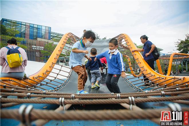 作为一个开放式的综合市政公园,盐田中央公园有不少值得打卡游玩的好去处。在“探索乐园”区域,有跷跷板、攀岩、滑滑梯等儿童专属玩乐项目。而整个公园内最显眼的当属一只由柔韧轻软的缆绳编织而成的巨型大章鱼,不仅外形可爱,更是该公园的主地标。这个巨型攀爬网架,可供十多个小朋友同时玩耍,波浪起伏的构造为攀爬增加了不少挑战难度。值得一提的是,这座大章鱼雕塑还是由大黄鸭的设计者——荷兰艺术家弗洛伦泰因•霍夫曼专门为盐田设计的。