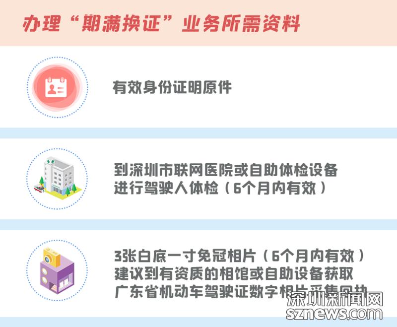 由深圳交警核发的驾驶证,市民只需准备好二代身份证、在有资质的照相馆或自助设备拍摄驾驶人照片,前往警医合作的试点医院一站式办理“体检+期满换证”业务。