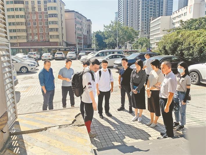 为了在实施过程中得到业主的认可和配合,商议多方都能接受且有利于市民日常出行的解决方案,昨日现场会还专门邀请了业主代表参加。记者在现场看到,此前两场台风带来的暴雨使得停车场的地面破损情况有所加剧,铺路面的小砖块烂得更多,原本小坑有扩大的迹象。参与现场会的工作人员和业主代表们也来回对L型停车场实地考察,共同商议解决办法。“这么多年,停车场都没有得到修缮,媒体的报道如同及时雨,切身为居民出行考虑,解决我们急难愁盼的身边事。”业主代表欧先生说。