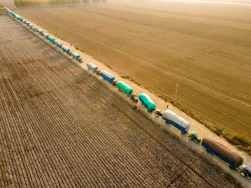 从棉田驶向当地棉花加工企业