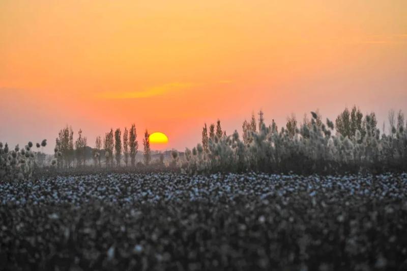 新疆棉田夕照。新华社记者胡虎虎摄