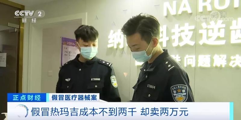 上海市公安局食药环侦总队副大队长聂柳:热玛吉产品买过来的时候,我们看到他合同价格22000元,实际上市场价格,美国那边出来正规的产品大概是80万元到100万元。热玛吉的耗材主要是射频探头,市场价格大概在4000元左右,他们跟不法商户订的长期合同,大概一个热玛吉的探头是350元到400元。