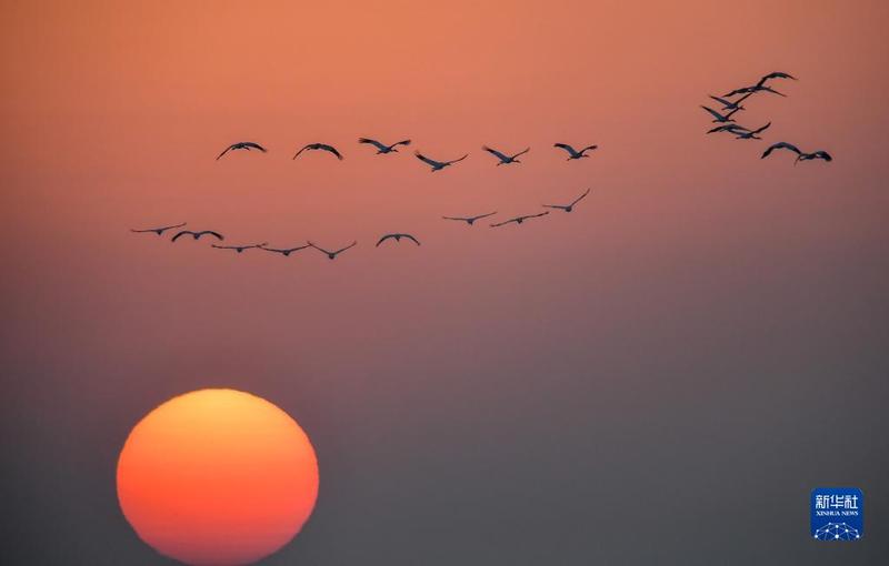 随着气温逐渐降低,在吉林省白城市镇赉县境内莫莫格国家级自然保护区栖息的候鸟陆续南迁。近年来,白城市实施河湖连通等多个生态工程,生态环境不断向好,每年春秋两季吸引包括白鹤、大雁、野鸭等在内的几十万只候鸟在莫莫格湿地停歇休养,补给觅食。