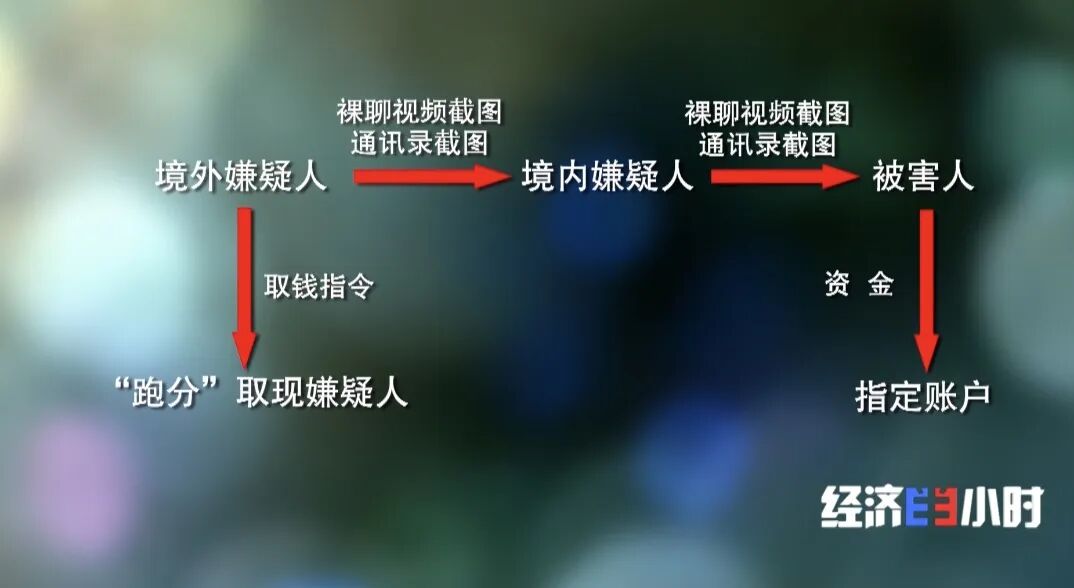 警方梳理了犯罪团伙的分工。首先由身处境外的组织者伪装成“女网友”,寻找到了诈骗对象之后就进行视频聊天,并诱导目标下载安装一款手机软件进行裸聊。
