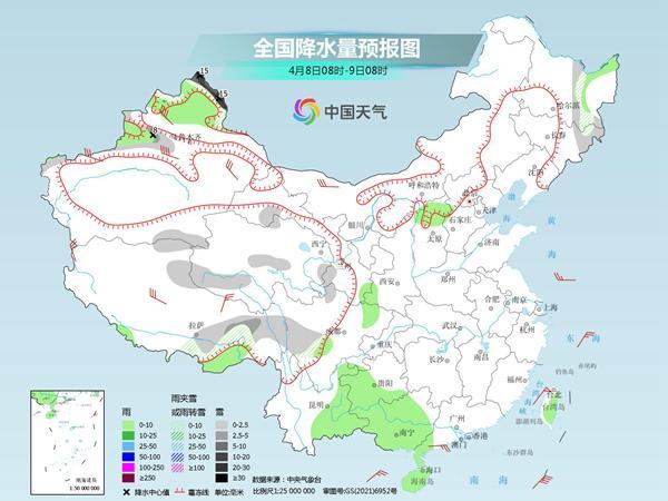 本周末,中东部降水稀少的状态还将持续,其中明天黑龙江东部、吉林东部、新疆北疆北部、西藏北部和东部、青海南部和西部、甘肃河西、川西高原等地部分地区有小到中雪或雨夹雪,其中,新疆北疆北部等地部分地区有大雪,局地暴雪。黑龙江东北部、新疆北部、西藏南部、山西北部、四川盆地北部、云南东部、贵州南部、广西西部、海南岛、台湾岛等地部分地区有小到中雨。