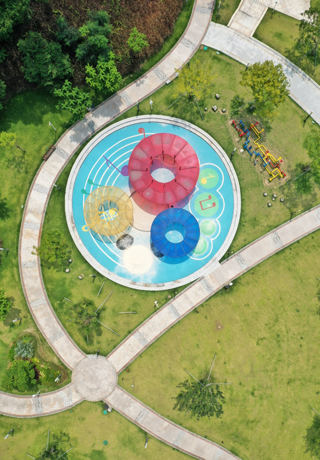白石龙音乐公园是深圳市第一个音乐主题公园,拥有5个功能区,每个功能区设计充分融入音乐元素,雕塑、铺装、座凳、景墙等,均按五线谱、小提琴等音乐器材形状设计。