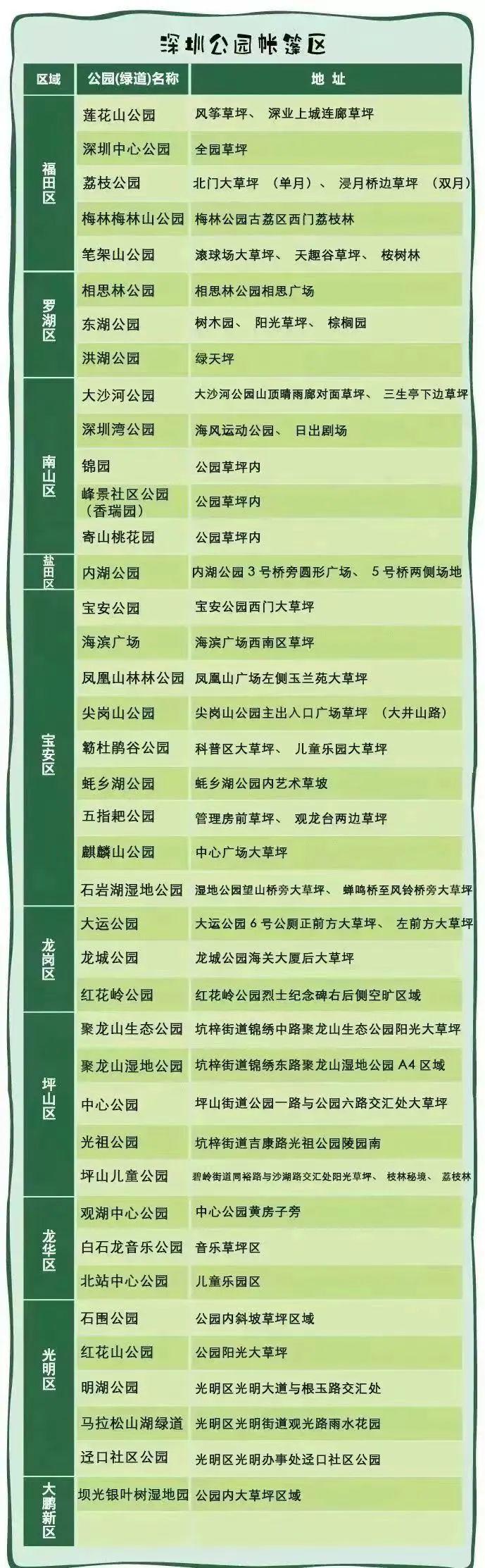 帐篷区:大运公园6号公厕正前方大草坪、左前方大草坪