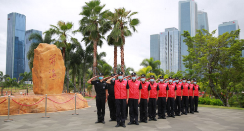 7月31日上午,南山区保安服务公司举行“党员先锋志愿服务队”授旗仪式暨义务换防活动。