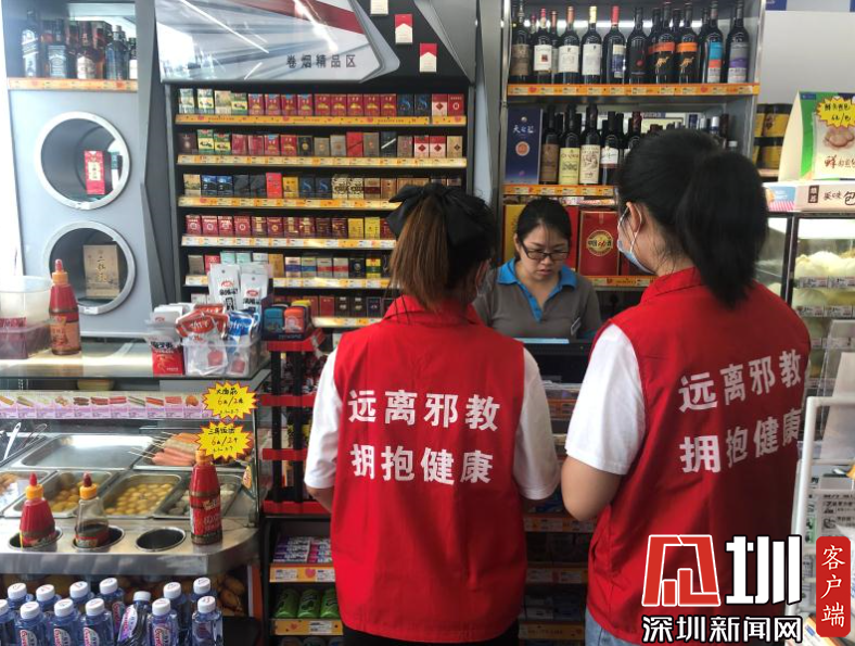 8月6日上午,横岗街道开展“防范邪教侵害、守护平安家园”为主题的反邪教警示教育进店铺宣传活动。