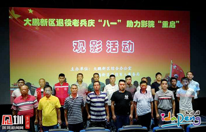 大鹏新区开展退役老兵庆八一助力影院“重启”活动,来自大鹏新区的30余名退役军人,共同观看电影《风声》。