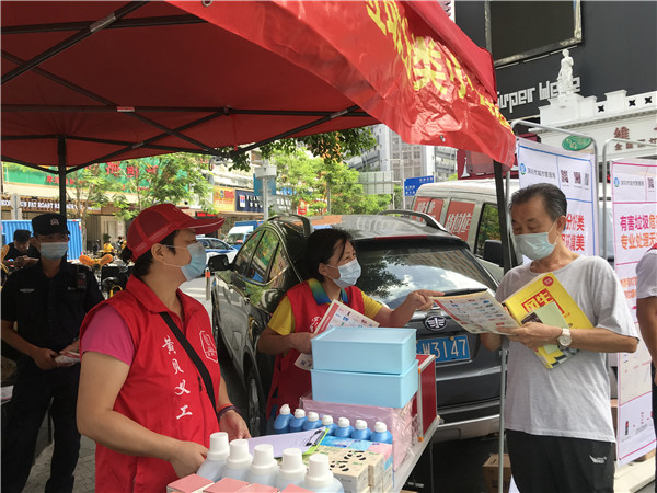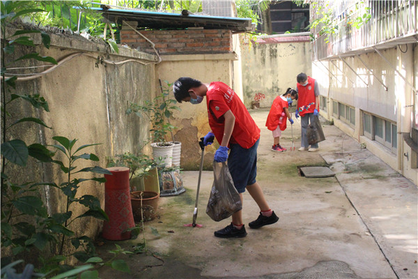 7月22日这天,深圳市罗湖区桂园街道老围社区党委组织社区工作人员和社区志愿者开展创文大扫除活动,喜全带着7岁的妹妹霏霏一起来为社区搞卫生。