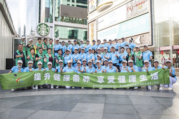 近日,来自南湖街道文锦社区老年人协会的十多名志愿者统一着装,于罗湖区佳宁娜广场为“罗湖区居民健康素养进社区”宣传活动提供服务,迎接罗湖区第六届居民健康素养知识大赛的到来。