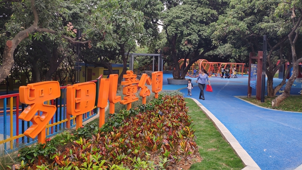 罗田儿童公园里,儿童游乐设施丰富多样,成为燕罗街道孩子闲娱乐的“打卡地”,周边居民家长溜娃又多了一绝佳好去处。