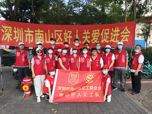 8月8日下午,深圳市南山区好人关爱促进会义工队(简称“南山好人义工队”)的25名爱心义工,活跃在南山区西丽片区九祥岭公交站台及周边马路,开展文明劝导服务活动