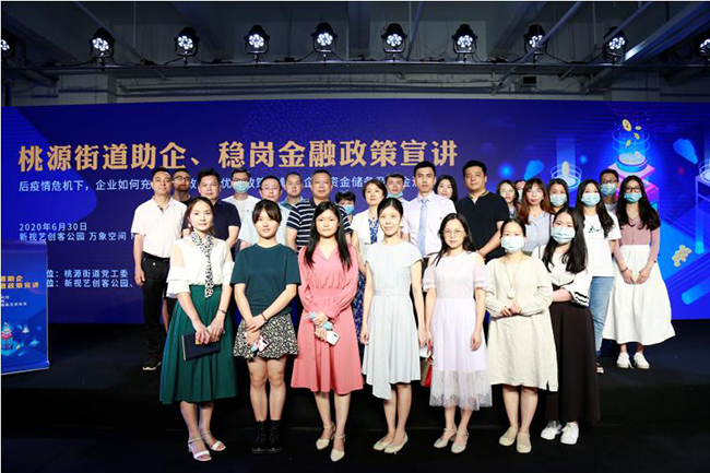6月30日,桃源街道在新视艺创客公园万象空间开展助企稳岗金融政策宣讲活动