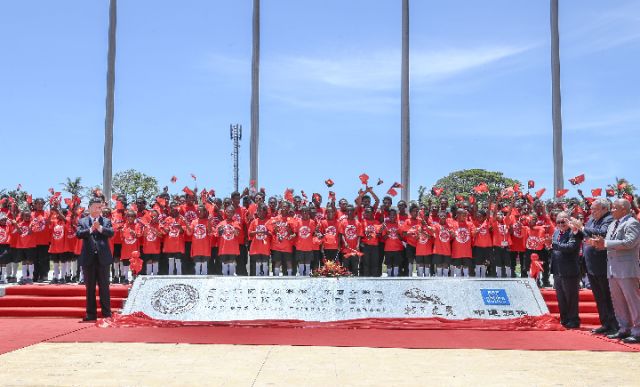 16日,习近平在莫尔斯比港和巴布亚新几内亚总理奥尼尔共同出席中国援建的布图卡学园启用仪式。