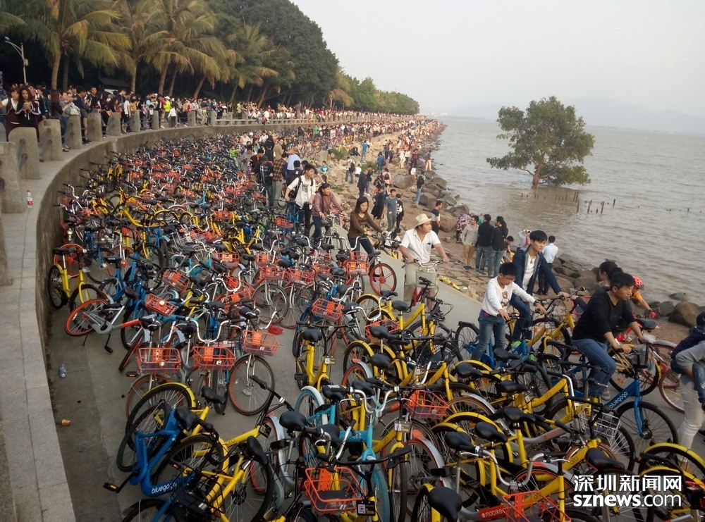 深圳人假日勤动脚,深圳湾公园被自行车堵了