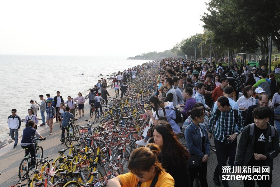 鹏城眼|深圳人假日勤动脚 共享单车“挤爆”深圳湾
