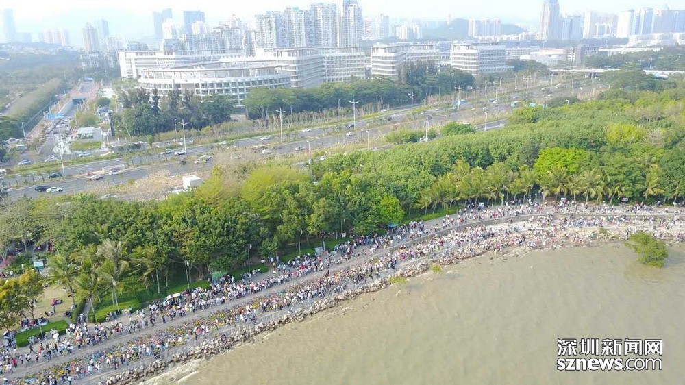 深圳人假日勤动脚,深圳湾公园被自行车堵了。